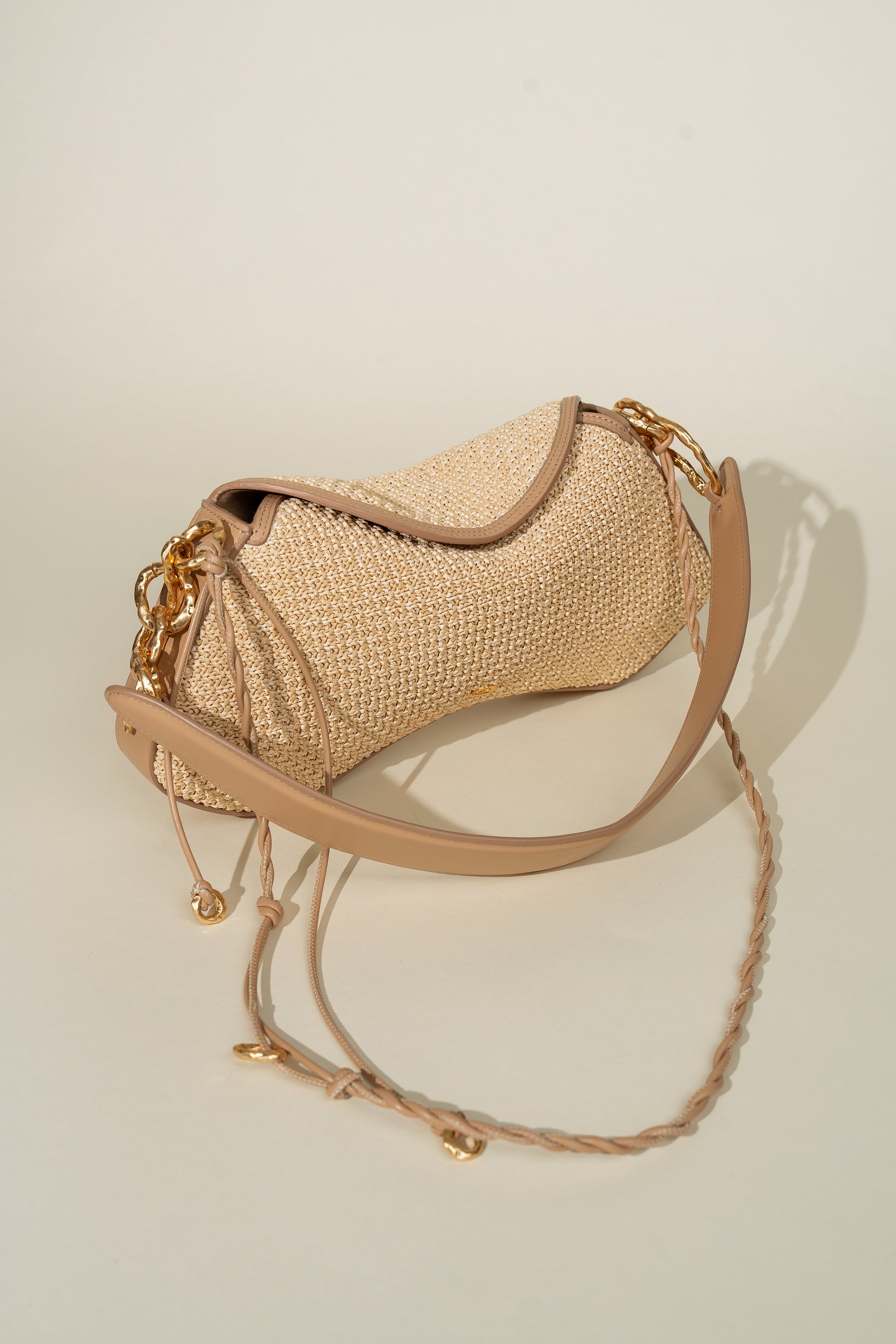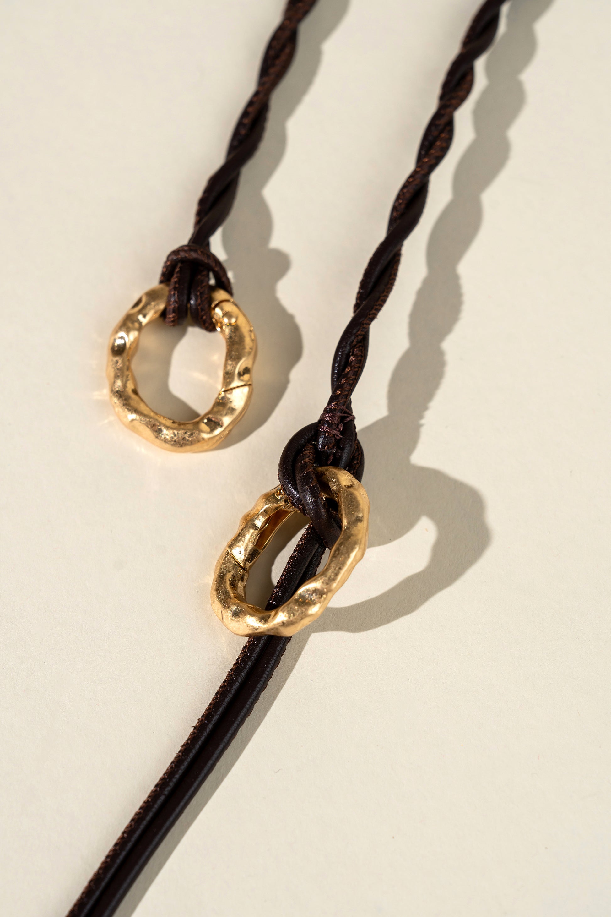 Elevate your Deià bag with the Organicà Strap- crafted from twisted supple leather cords and accented with our signature hand-tooled 24k gold-plated brass rings